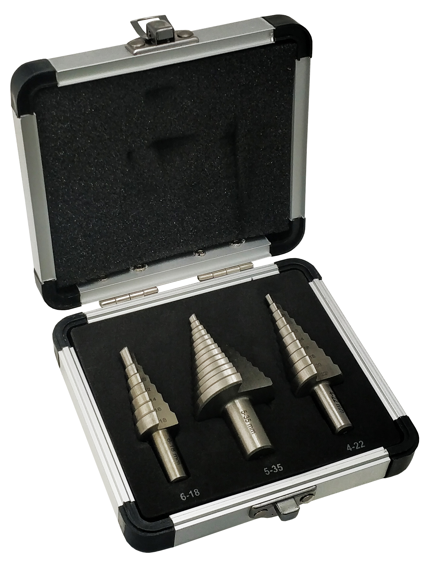3 piece Step Drill Set (6 - 18mm, 4 - 22mm, 5 - 35mm)