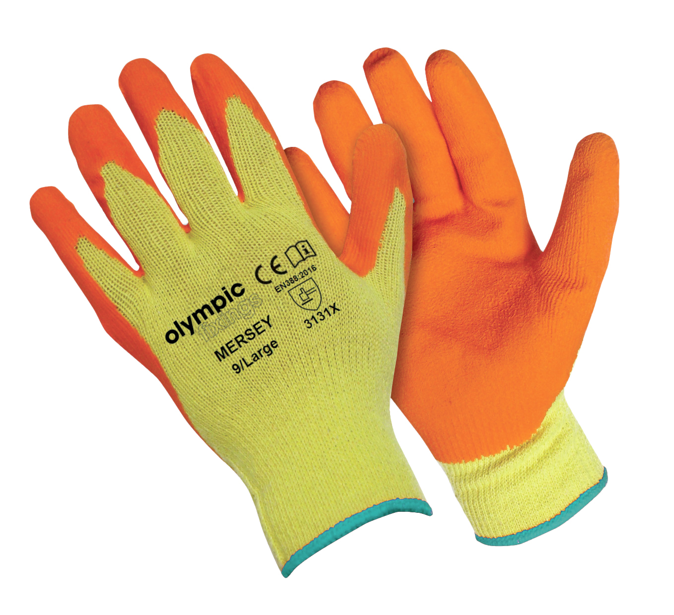 Palm, fingers and fully dipped thumb in sandy latex for extra grip