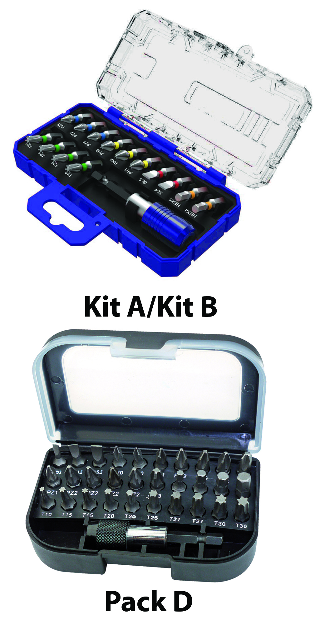 Kit A - 15 piece Kit B - 15 piece Pack D - 31 piece