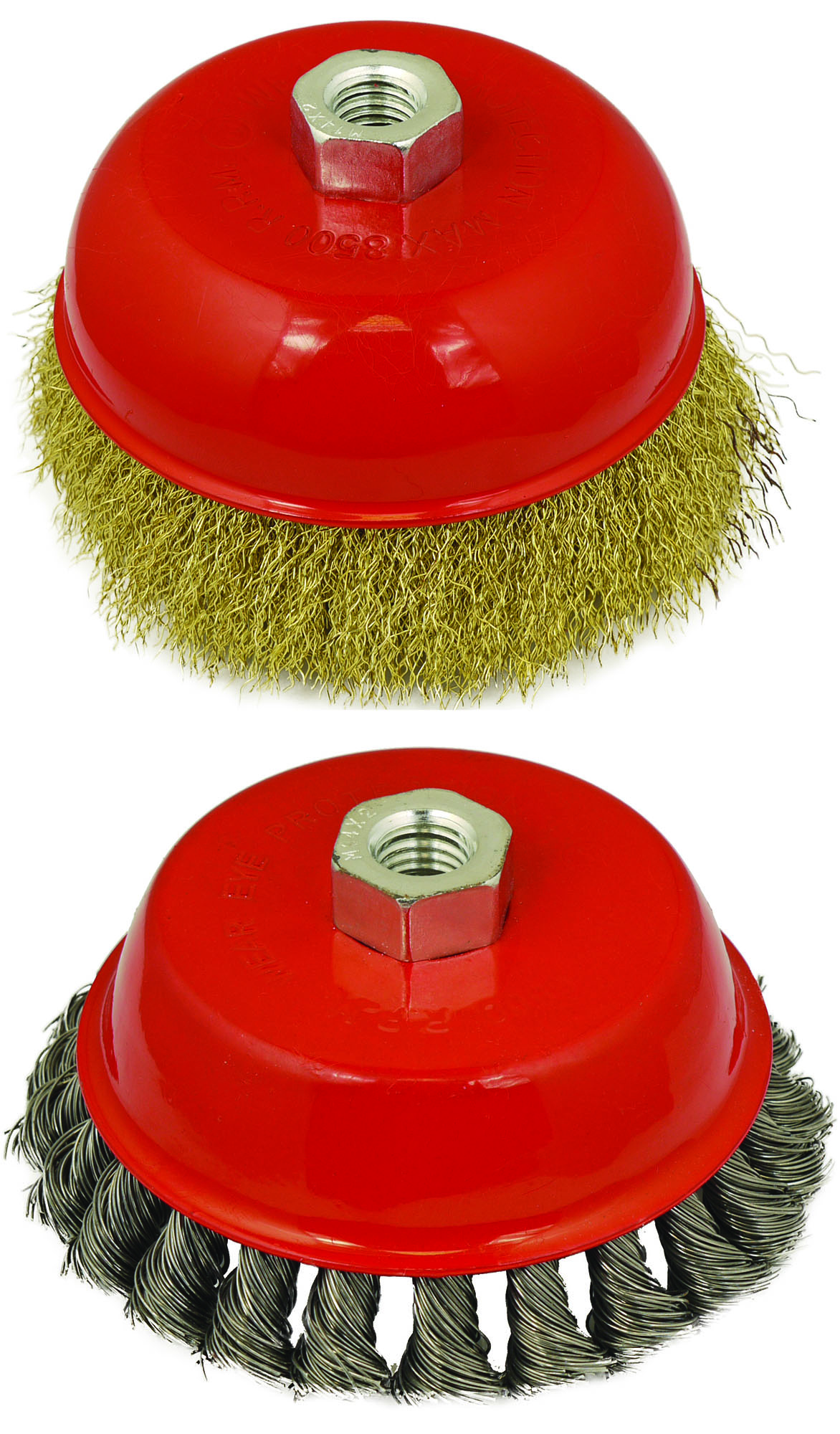 Crimped wire cup type is ideal for lighter duty applications including cleaning metal, wood and stone surfaces
