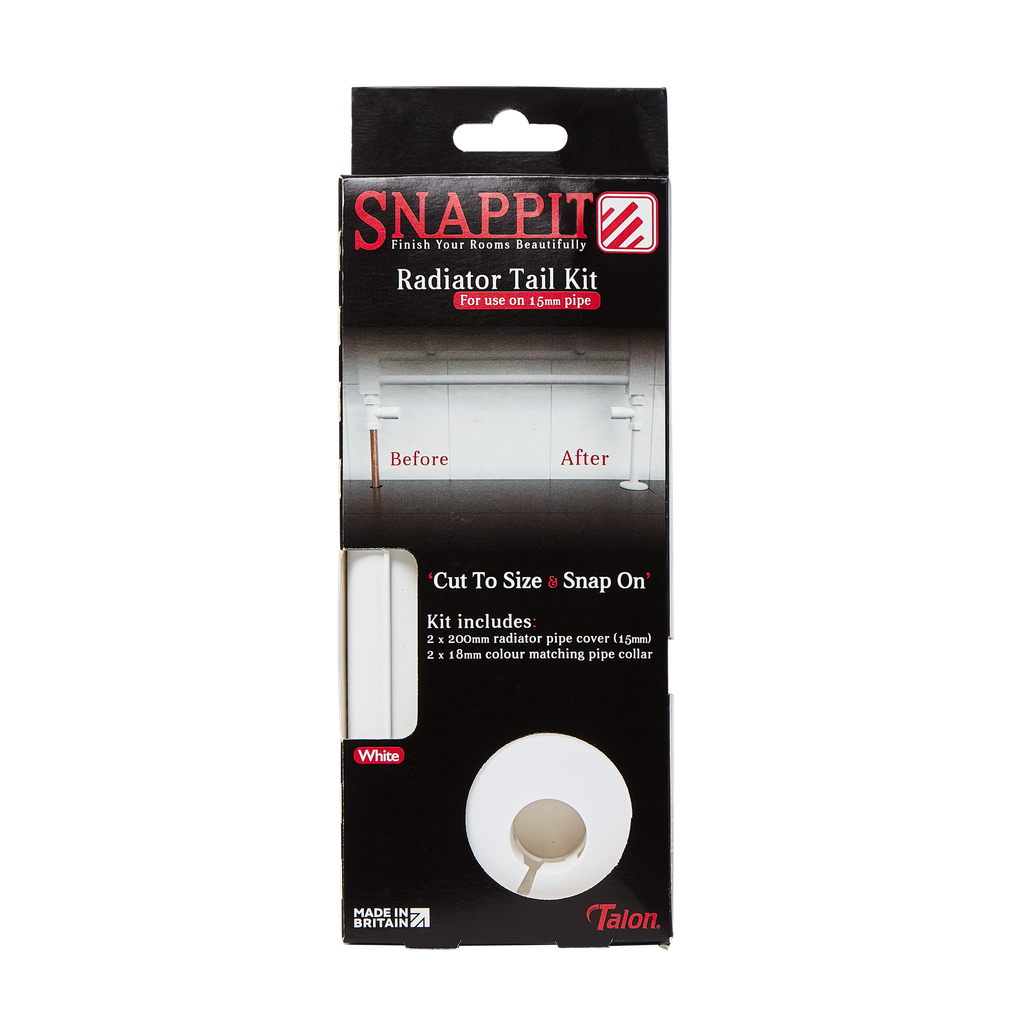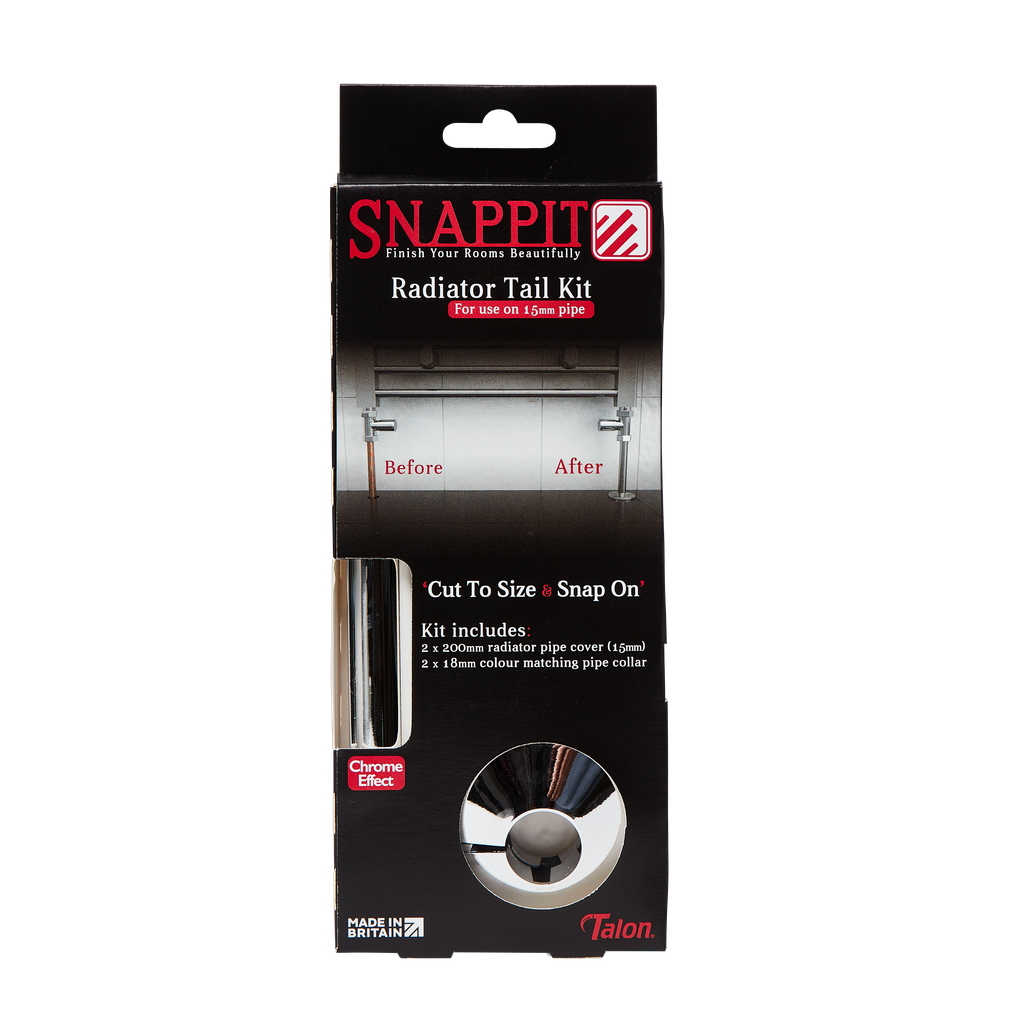 This tail kit includes Snappits and collars. Snappit is a rigid pipe finish product that is great for covering unsightly, visible, copper pipework. It is a mess-free alternative to paint - saving time and improving appearance. The pipe collars give a seamless finish at the base of the pipe.